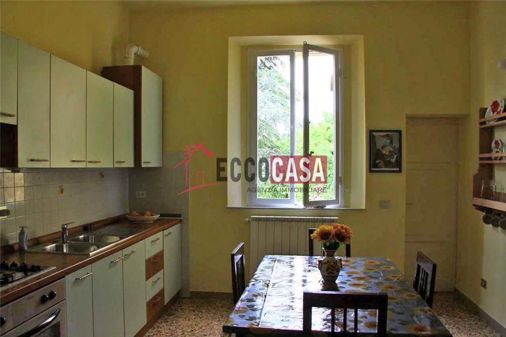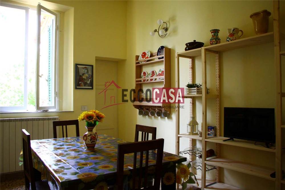 The building is currently divided into three apartments, two of which have already been renovated, a larger apartment that is ideal for personalization, a spacious attic, and a large study with four panoramic windows overlooking the Tuscan countryside and a bathroom.