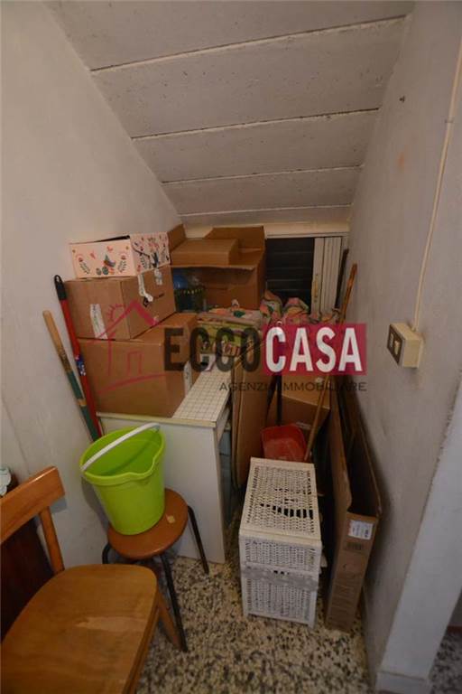 ECCOCASA S43 - Due locali da ristrutturare, disposti su due livelli, con doppio ingresso. I locali, attualmente accatastati come magazzino, si prestano alla creazione di un bilocale su due piani, composto ad esempio come da progetto indicato, con zona soggiorno pranzo e bagno al livello superiore, e con camera e secondo bagno a quello inferiore (o viceversa). La superficie totale lorda è di 75 mq, quella utile di 65 oltre la loggia. E' previsto uno/due posti auto riservati nella proprietà esterna comune.