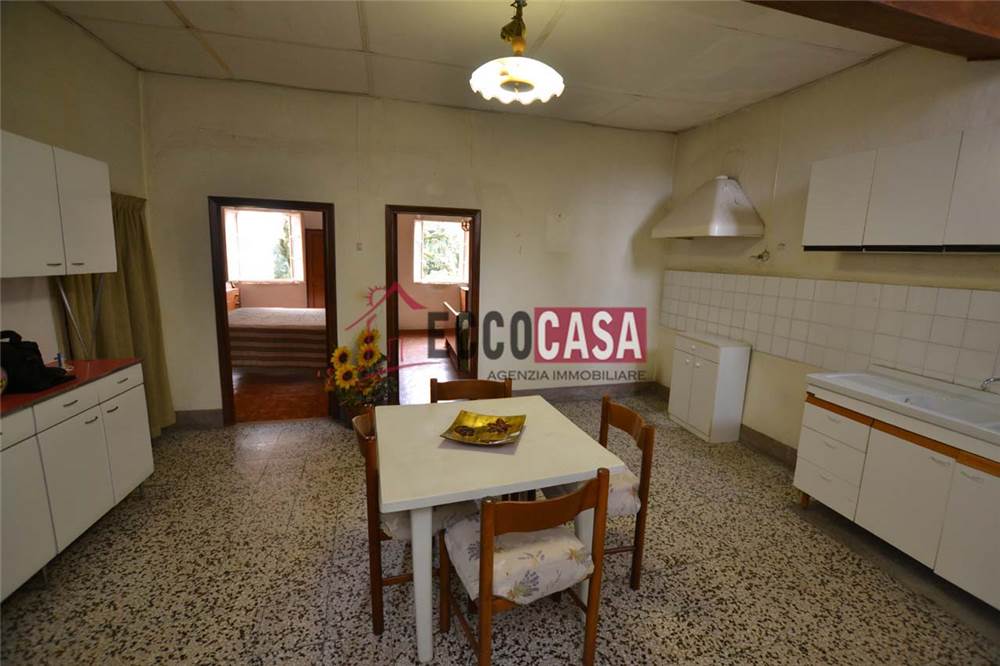 A Terricciola, appartamento da ristrutturare al piano secondo e ultimo, ingresso da scala a due, composto da grande cucina-soggiorno, bagno, due camere matrimoniali; corredato da grande garage e altri locali accessori per circa 100 mq, oltre a piccolo spazio esterno privato.